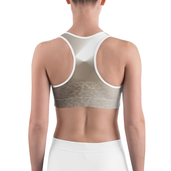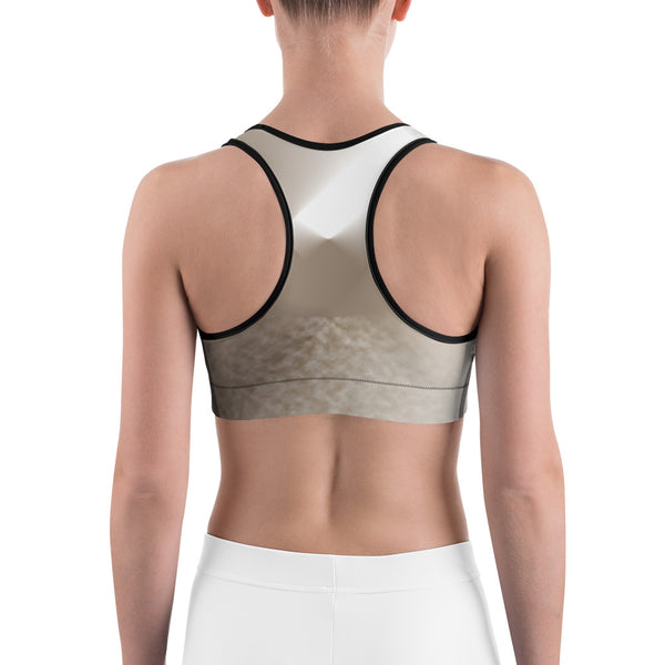 This gorgeous sports bra is made from moisture-wicking material that stays dry during low and medium intensity workouts. The bra has support material in the shoulder straps, double layer front, and a wide elastic band to ensure constant support.